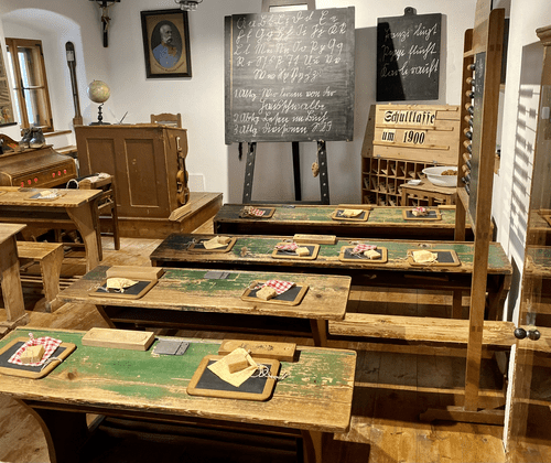 The OÖ. School Museum Bad Leonfelden has been one of the must-see places to explore the Upper Austrian museum landscape since it opened in 1988. It is housed in what is probably the oldest surviving former school building in Upper Austria. It was built in 1577 as the "DOMUS DISCIPLINAE" (House of Education) and was used as a school until 1850.Visiting the Bad Leonfelden School Museum means:To breathe school air from over five centuriesTo get to know the history of the "lower school system" in AustriaTo reflect on how far teaching and education have changed for the betterTo recall memories of your own school daysTo undertake an eventful excursion to a remarkable border region, 27 km north of LinzEducational offersGuided tours for school classes and adult groups by expert cultural mediatorsFocus of guided tours by arrangement, e.g. school in the Nazi era, history of the schoolHistorical school lessons for school classes and adult groupsChampagne reception followed by a guided tour for family and company celebrationsAudio guides in German, English and Czech for individual visitorsWriting with a stylus on slates like in the old daysSilent movies from the old days