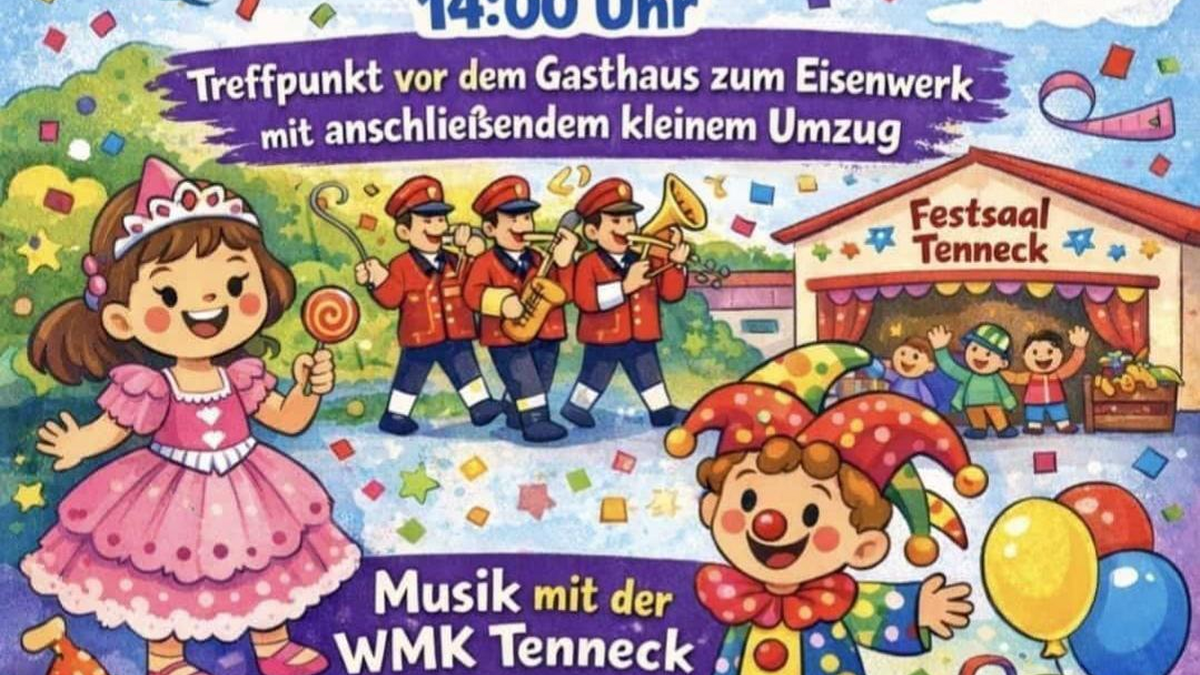 Kinderfasching der Werksmusik Tenneck ab 14.00 Uhr im Festsaal Tenneck Rosenmontag, 16.02.