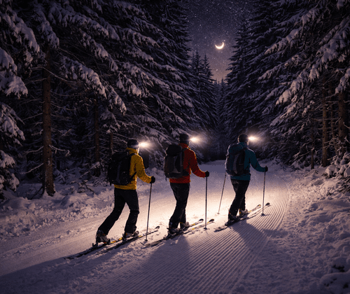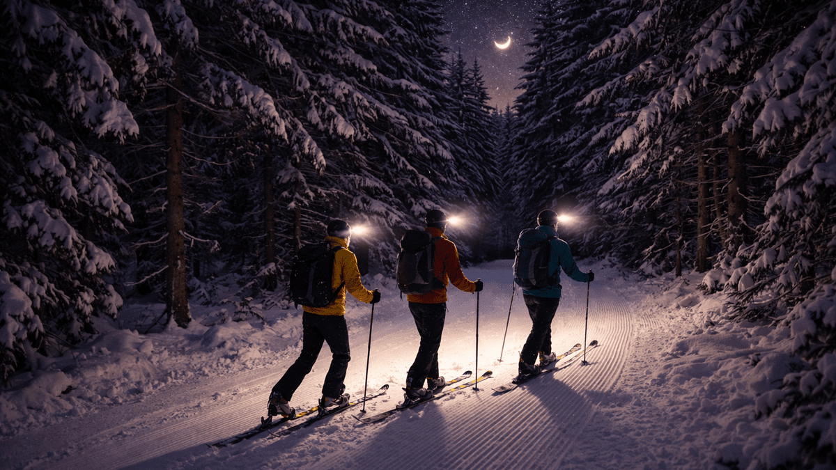 Gleite durch die Abenddämmerung und erlebe das Skifahren in einer ganz neuen Dimension! Die Piste 1a, von der Pistensperre bis 22 Uhr ausgenommen, führt dich unter funkelnden Sternen durch eine stille, winterliche Landschaft. Lass den Alltag hinter die und genieße dieses unvergessliche Erlebnis.