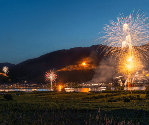 Die Sonnenwende ist tief in der Geschichte der Wachau verwurzelt und wird mit großer Hingabe gefeiert. In den Spitzer Weinterrassen und entlang der Donau werden über 3.000 Fackeln entzündet, die das Tal in ein warmes, festliches Licht tauchen. Besonders beeindruckend sind die majestätischen Holzhaufen-Feuer am 1000-Eimerberg sowie an der Donaulände auf beiden Ufern der Donau, die hell in die Nacht leuchten.