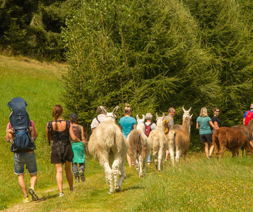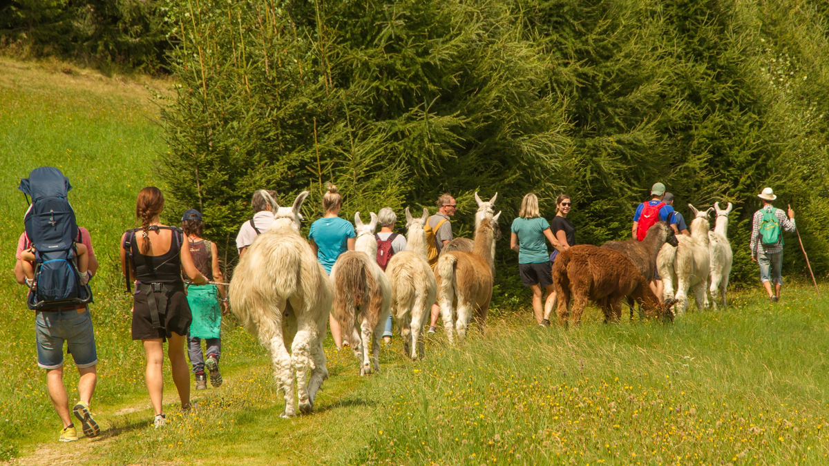 Wenn der Frühling die Almen rund um Hirschegg‑Pack erwachen lässt, lädt die „Frühlingsboten‑Lamawanderung“ zu einem besonderen Naturerlebnis ein. Bei dieser Wanderung wird jeder Teilnehmende gemeinsam mit einem eigenen Lama auf einem gemütlichen Weg geführt, ideal für Familien, Paare oder Freundesgruppen. Der Startpunkt ist beim Lama‑Gehege; dort gibt es zunächst eine Einführung ins Lama‑Führen und Informationen über die ruhigen, freundlichen Tiere und ihre Haltung. Dann verläuft der Weg durch Waldstücke, entlang der Teigitsch‑Bäche, über Wiesen und zurück, eingebettet in die stille, grüne Landschaft der Erlebnisregion Graz. Während der Wanderung und in den Pausen bleibt ausreichend Zeit zum Plaudern, für Tierbeobachtung oder einfach um den Frühjahrsduft der Natur zu genießen. Dabei bietet sich die Gelegenheit, erste Frühlingspflanzen zu entdecken. Oben auf der Alm wartet ein frischer Frühlings‑Cocktail, wahlweise mit oder ohne Alkohol, auf die Gäste. Dazu werden heitere oder besinnliche Frühlingsgedichte vorgelesen; eine ruhige, stimmungsvolle Kombination aus Natur, Genuss und Poesie. Die Tour dauert etwa 3,5 bis 4 Stunden und startet um 13:30 Uhr (Treffpunkt: Lama‑Gehege). Eine Anmeldung im Voraus ist erforderlich; sowohl Einzelpersonen als auch Gruppen sind willkommen.