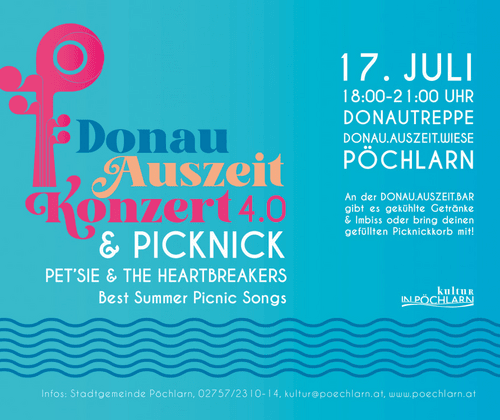 Wenn sich der Sommer von seiner schönsten Seite zeigt, wird die Donau.Auszeit.Wiese wieder zur Bühne für die beliebte Donau.Auszeit.Konzert & Picknick. In entspannter Atmosphäre verbindet sich stimmungsvolle Live-Musik mit der besonderen Leichtigkeit eines Sommerabends am Wasser.