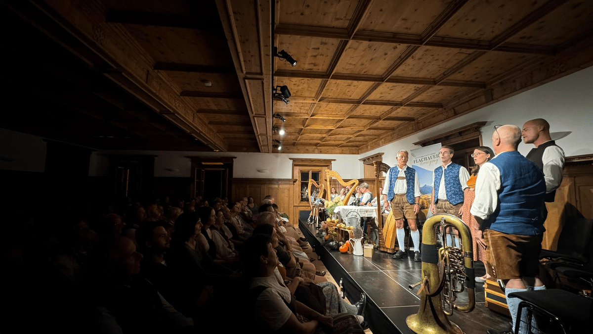 Traditionelle Klänge und Zusammengehörigkeit: Eröffnung des „Flachauer Herbstgsang“ Am Eröffnungsabend des „Flachauer Herbstgsang“, der vom 17. bis 20. September 2026 in Flachau stattfindet, können sich die Besucher auf traditionelle Volksmusik mit den "Strasser Geschwistern", "Dreigsong Herzklopfn" und der "Drent-Herent-Musi" sowie eine "Dialektlesung von Hans Hetz" freuen. Der Abend endet mit regionalen kulinarischen Spezialitäten und rundet dieses musikalische Ereignis perfekt ab. Weitere Informationen zum „Flachauer Herbstgsang”, darunter die Jodelwanderung, das offene Singen auf Schloss Höch, der Sänger- und Musistammtisch mit anschließenden Herbsttanz und das große Finale beim Flachauer Erntedankfest, finden Sie unter www.herbstgsang.at. Hier Eröffnungsabend buchen