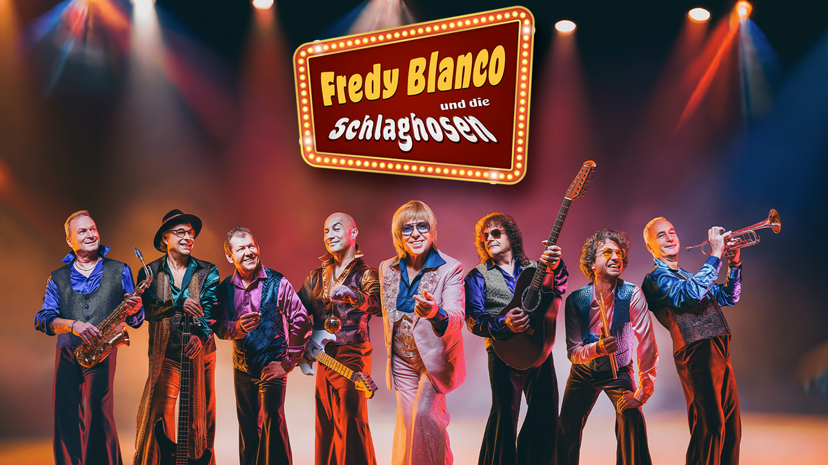 Die große 70er Jahre Kult-Schlagershow. Bereit für eine musikalische Zeitreise. Fredy Blanco und die Schlaghosen bringen die Hits der 70er Jahre mit einer explosiven Mischung aus Energie und Nostalgie zurück auf die Bühne.