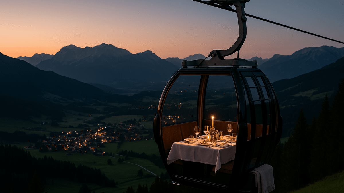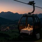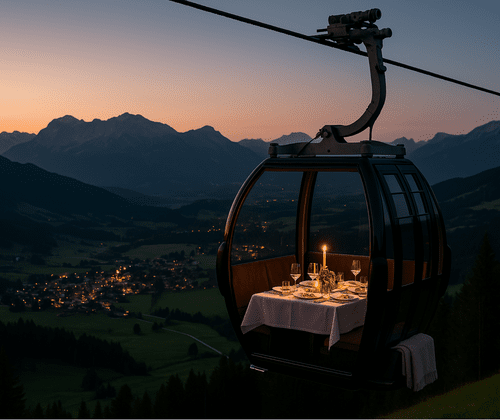 Himmelhohe Gaumenfreude beim DROI-Gondeldinner! Lass dich von exquisiten Speisen und der malerischen Umgebung hoch über Werfenweng verzaubern. Der Abend beginnt um 18:30 Uhr mit einem Glas Prosecco an der Talstation der Dorfbahn Rosnerköpfl in Werfenweng. Einmal in der Gondel Platz genommen, erwartet dich ein Flying Dinner - Gourmetmenü, kreiert von Küchenchef Peter Brandauer. Dazu werden erlesene Weine, kühles Bier oder alkoholfreie Drinks serviert. Dauer des Dinners: bis etwa 22:00 Uhr. Ablauf Empfang um 18:30 Uhr mit Prosecco am DROI Schirm Einstieg um 19 Uhr Acht Runden mit der Dorfbahn Rosnerköpfl mit "Flying Dinner" Bei jeder 2. Runde werden in der Talstation die Speisen serviert – in der Mittelstation die Getränke. Für den Toilettenbesuch oder eine Pause ist es kein Problem, für eine Runde mal auszustiegen. Ebenso kann eine Pause an der Bergstation genutzt werden, um von dort den wunderschönen Ausblick zu genießen. Aussteigen – circa 22:00 Uhr Anschließend heißt dich das DROI Team in der DROI Bar zu einem "Absacker" herzlich willkommen. Preis bei 2 Personen in der Gondel: € 120 pro Person (inkl. Menü, Getränke, Seilbahnfahrt & Begrüßungsdrink) Preis bei 3 oder 4 Personen in der Gondel: € 110 pro Person (inkl. Menü, Getränke, Seilbahnfahrt & Begrüßungsdrink) In einer Gondel finden bis zu vier Personen Platz. Das Gondelinnere präsentiert sich zu diesem stimmungsvollen Anlass von einer besonders eleganten und stilvollen Seite mit einem festlich gedeckten Tisch. Sollte es abends kühl werden, gibt es wärmende Decken zum Einkuscheln. Reservierungen unter +43 676 3447898 oder www.droi.at.