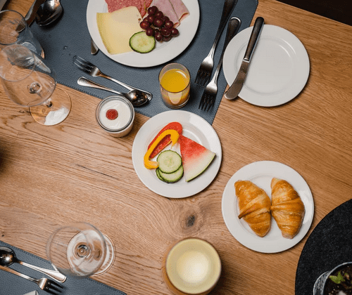 Anschließend erwartet dich ein vielfältiges Frühstücksbuffet auf der traumhaften Panorama Terrasse des Salettls mit Kaffee, Tee, Sekt, Süßes & Saures, Eiergerichten, Gebäck uvm. “All you can eat”