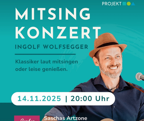 Lust auf einen lässigen Abend voller bekannter Songs, die direkt ins Herz gehen? Dann erlebe Ingolf Wolfsegger live in Traismauer! Mit Gitarre, Mundharmonika und seiner unverwechselbaren Stimme bringt Ingolf die Klassiker auf die Bühne – und du bist Teil davon!