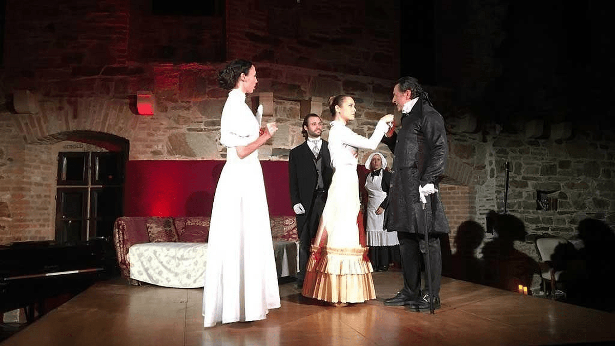 Die Handlung von DRACULA wird in drei Akten erzählt und orientiert sich dabei an Bram Stokers Meisterwerk. Etliche Teile der Inszenierung finden in verschiedenen Räumlichkeiten und Außenbereichen statt. Das eindrucksvolle Ambiente der Anlage unterstützt dabei die authentische Umsetzung der Geschichte.