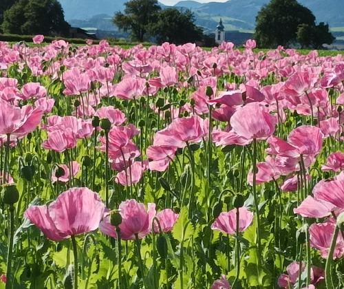 Besonders schön ist es zu dieser Zeit, wo die ringsum gelegenen Mohnfelder in Blüte stehen. Hier lohnt es sich die Kamera bereitzuhalten um besondere Momente inmitten der Blütenpracht einzufangen.