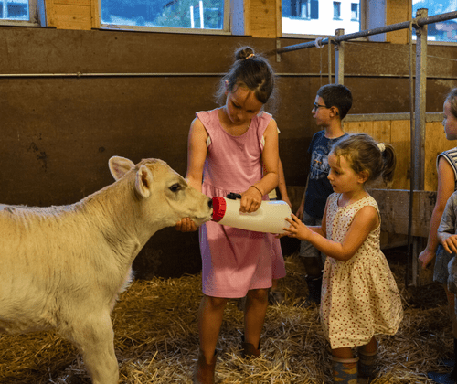Auf dem Bauernhof der Familie Moosbrugger können Kinder zuschauen, wie der Bauer seine Kühe füttert und melkt. Die frische und "kuhwarme" Milch kann gleich an Ort und Stelle probiert werden. Natürlich sind auch eure Eltern herzlich willkommen.