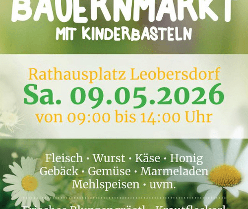 Am Samstag, den 9. Mai 2026, verwandelt sich der Rathausplatz Leobersdorf wieder in einen bunten Treffpunkt regionaler Vielfalt. Von 09:00 bis 14:00 Uhr lädt der Bauernmarkt mit Kinderbasteln -perfekt vor Muttertag, zum Gustieren, Staunen und Genießen ein.