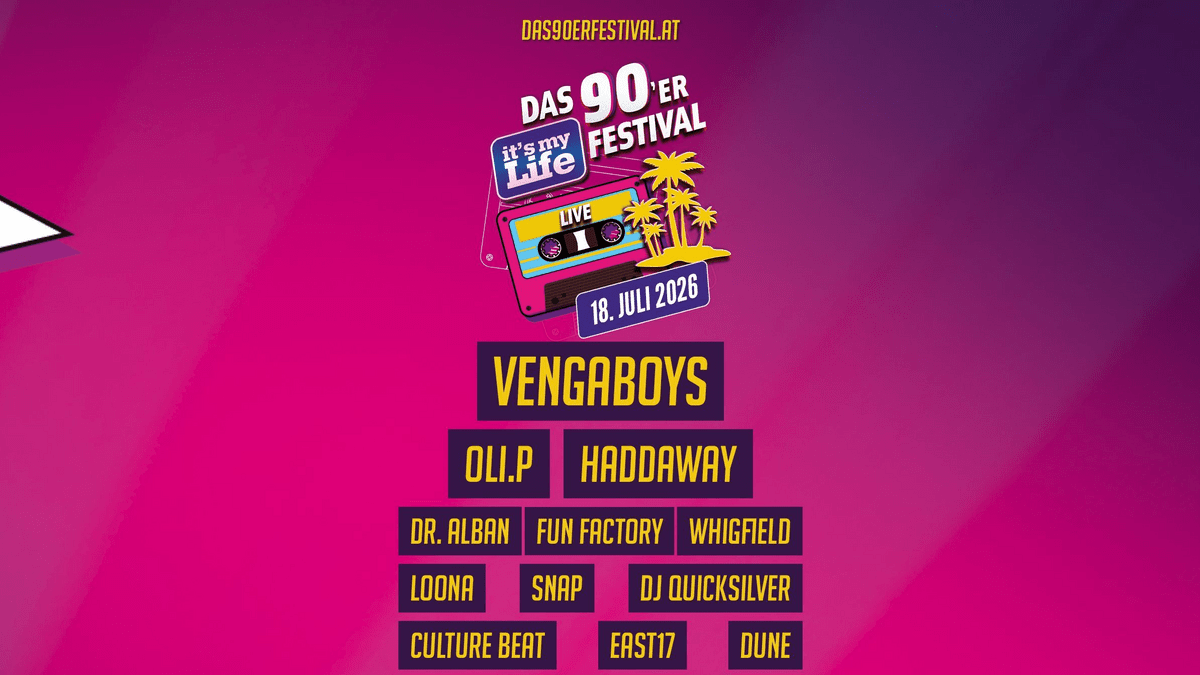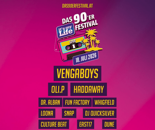 IT´S MY LIFE, das größte 90er Open Air Festival Österreichs, bringt die Mega-Stars und die besten Songs der Dekade zurück auf die Bühne. Spüre die Vibes und feier mit uns eine Zeitreise der Extraklasse!