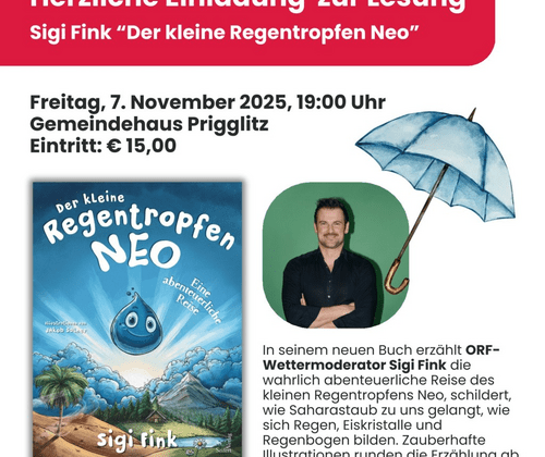 In seinem neuen Buch erzählt ORF-Wettermoderator Sigi Fink die wahrlich abenteuerliche Reise des kleinen Regentropfens Neo, schildert, wie Saharastaub zu uns gelangt, wie sich Regen, Eiskristalle und Regenbogen bilden. Zauberhafte Illustration runden die Erzählung ab.
