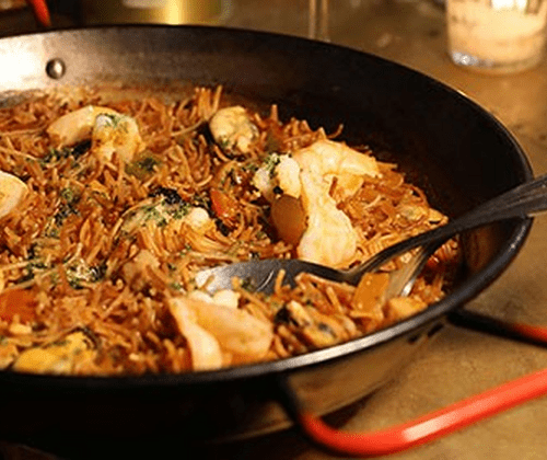 Gemeinsam bereiten Sie eine andalusische Paella Marinera oder Fideuà und verschiedene Tapas zu. Dazu erhalten Sie Tipps und Tricks zur Handhabung von Meeresfrüchten.