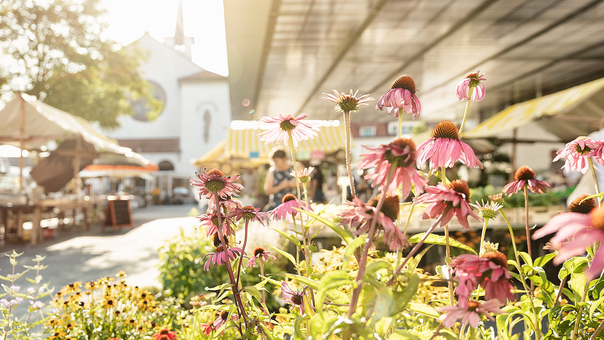 Am 22. August dürfen sich Garten- und Pflanzenliebhaber:innen wieder über den farbenfrohen Kräutermarkt freuen. In der Zeit von 8 - 14 Uhr zeigen Austeller:innen die duftende und kunterbunte Welt der Kräuter und allem Blühenden.