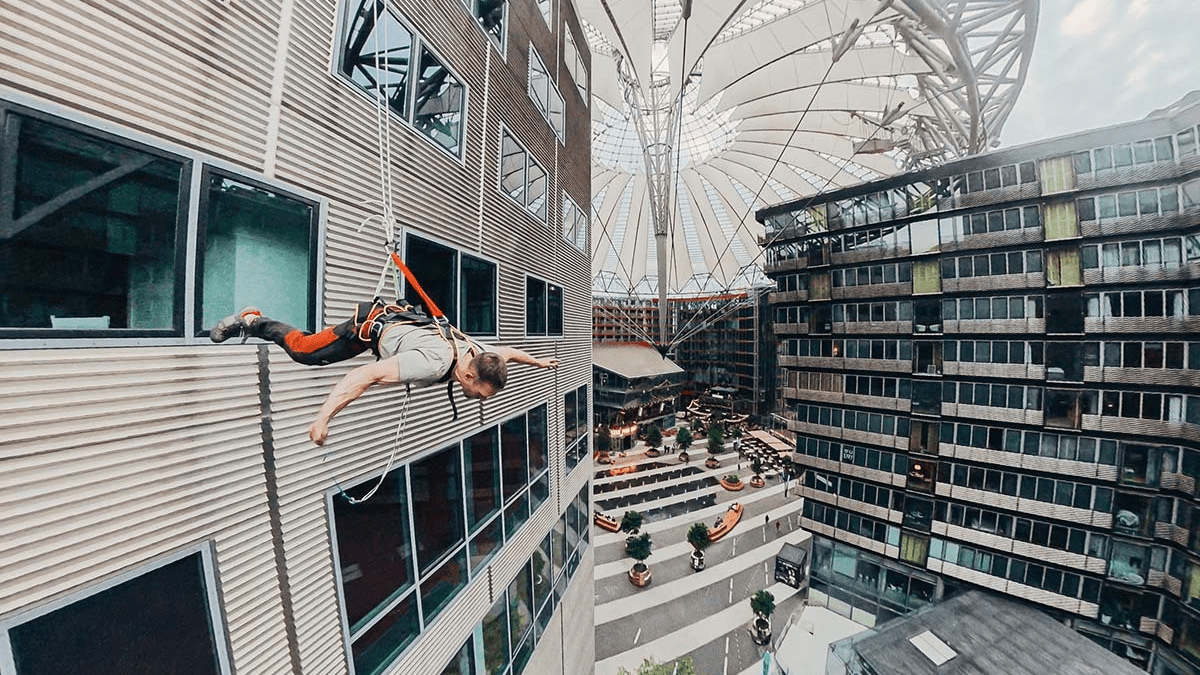 Bevor du die Wände hoch gehst, solltest du es erstmal umgekehrt probieren! Deinen ersten Kick holst du dir beim über die Kante kippen lassen. "Face down" siehst du der Herausforderung direkt ins Auge. Dann geht’s mit Blick nach unten satte 40 Meter senkrecht in die Tiefe. Ganz nach Lust und Mut bestimmst du deine Geschwindigkeit selbst. Beim House Running am "Das Center Berlin" beweist du großen Mut und brichst mit etwas Glück den Laufzeitrekord. Wage deinen Schritt "Over the Edge". Inhalt House Running am "Das Center Berlin" (ehemals Sony Center) am Potsdamer Platz Die Höhe beträgt 40m Blick auf den DB Tower und die ikonische Dachkonstruktion ​​Einweisung   und ​​Betreuung durch einen erfahrenen Instruktor Professionelle   Leihausrüstung Teilnehmer Gutschein gültig für 1 Person Zuschauer möglich (kostenlos) Dauer Ca. 30 Minuten (mit Anmeldung) Ausrüstung & Kleidung Mitzubringen: festes Schuhwerk mit rutschfester Sohle, bequeme und sportliche Kleidung Teilnahmebedingungen Mindestalter: 16 Jahre (unter 18 Jahren nur mit Einverständniserklärung eines Erziehungsberechtigten) Gewicht: mind. 50 kg, max. 110 kg Normale physische und psychische Verfassung