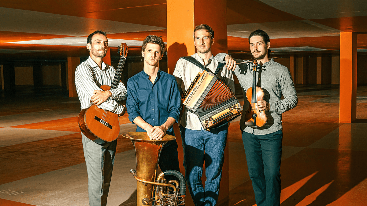 Maxjoseph verweben Geige, Steirische, Gitarre und Tuba zu einem Klang, der Volksmusik neu denkt – offen, verspielt und voller Eigenwillen.