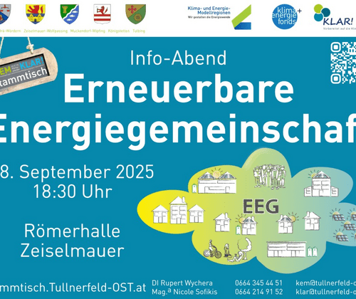 Info-Abend zum Thema Erneuerbare Energiegemeinschaften: aktuelle Angebote und Anleitungen für die Gründung und den Betrieb eigener EEGs