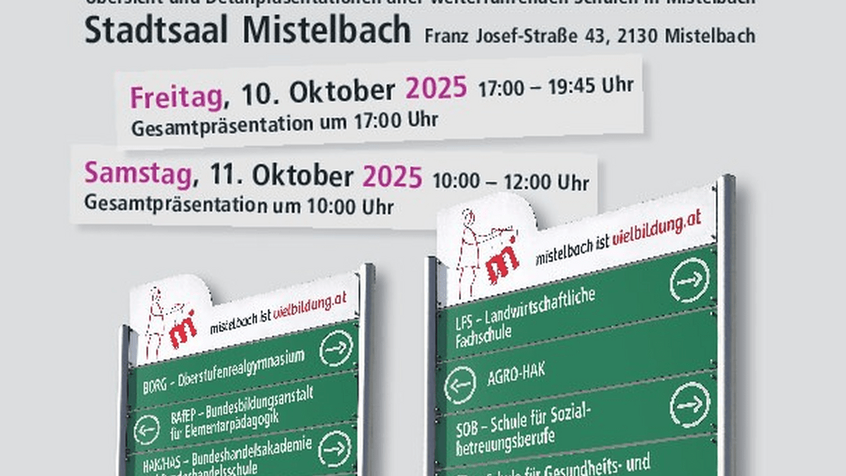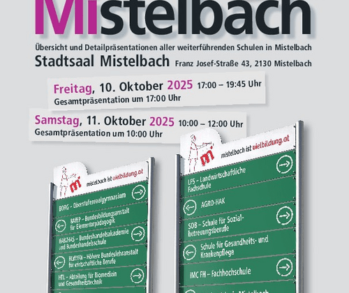 Die BiMi 2025 findet am 10. Oktober von 17 bis 19.45 Uhr und am 11. Oktober von 10 bis 12.00 Uhr statt. Bei einem allgemeinen Vortag jeweils am Beginn der Veranstaltung stellen sich die einzelnen Schulen kurz vor, anschließend kann man sich über die Schulen in den verschiedenen Räumlichkeiten des Stadtsaals informieren.