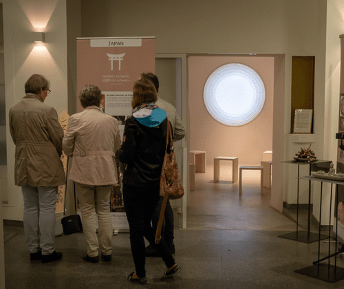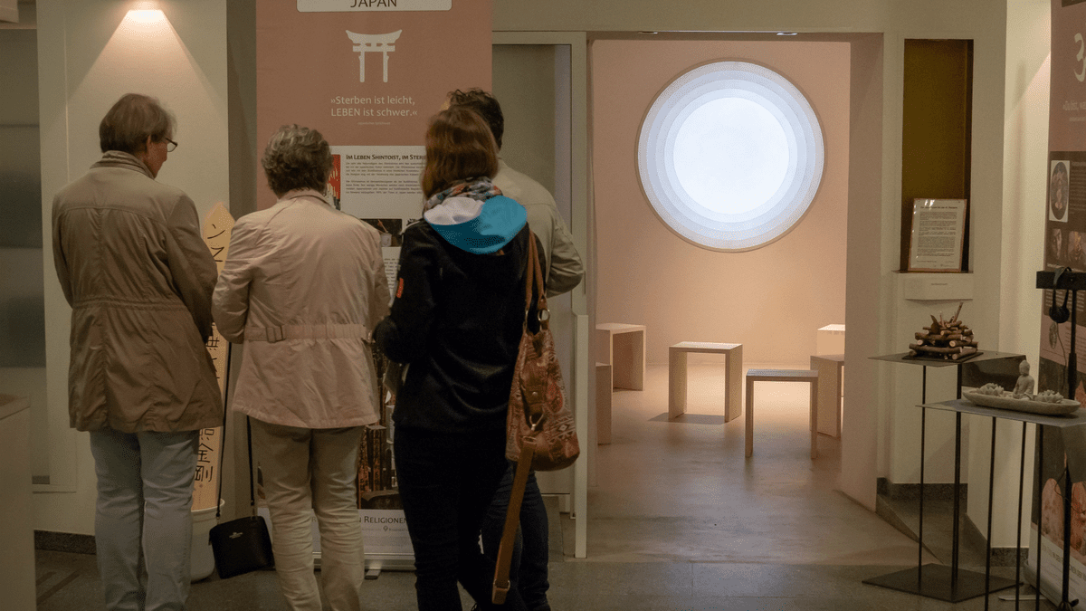 nisse verständlich. Zehn Audiostationen laden zum Hören ein, z. B. von Liedern und Gebeten, die bei Bestattungen Verwendung finden. Darüber hinaus gibt es viele Elemente zum Angreifen.