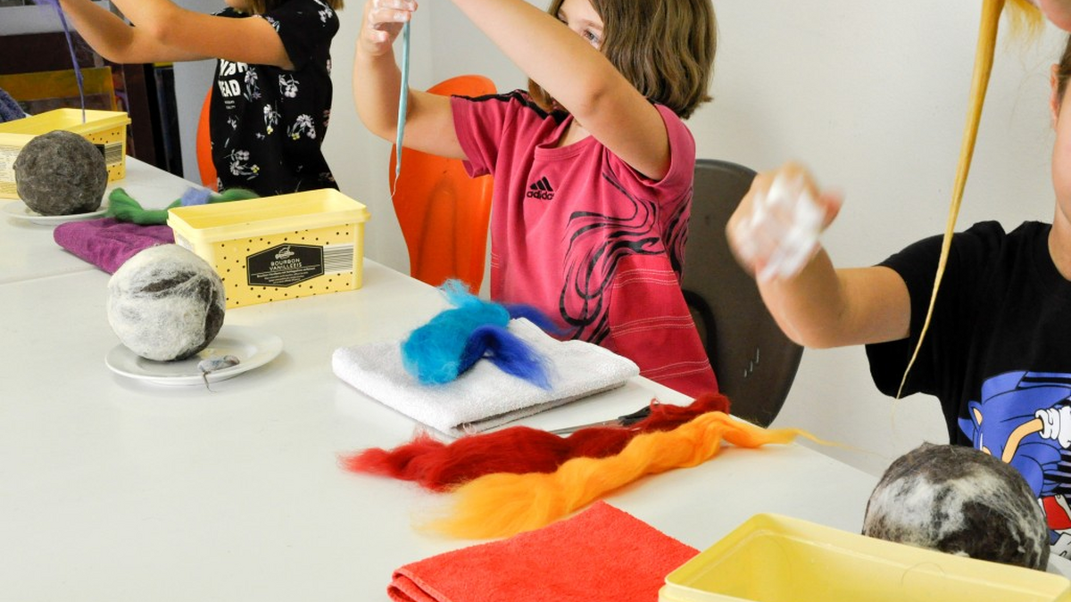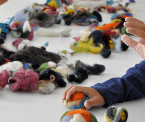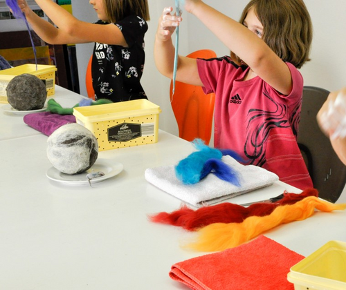 Wir Filzen! Mit warmem Wasser und Seife entsteht aus bunter Schafwolle eine Kugel. Rasselball, Mutkugel oder Jonglierball? Das entscheidest du!