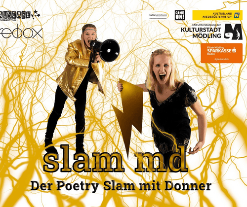 Der Blitz schlägt wieder in Mödling ein, begleitet von einem Donnergrollen. Es ist Zeit für die nächste Ausgabe von "slam’md - Der Poetry Slam mit Donner"