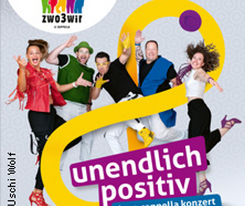 Mit dem Konzertprogramm "unendlich positiv" nimmt das Ensemble dieses Mal die Kinder der Musikmittelschule mit auf seine Reise. Gemeinsam mit den SchülerInnen der Musikklassen musizieren zwo3wir auf der Bühne der Ybbsfeldhalle. Freuen Sie sich auf einen besonderen Abend, bei dem der Spaß und die Freude am Musizieren nicht zu kurz kommen werden.