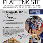 20 JAHRE PLATTENKISTE Eintritt frei: Um Platz-/Tischreservierung an Edith Schiller wunsch@plattenkiste.radio wird gebeten