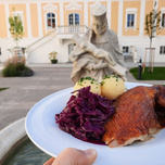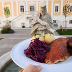 Lass dich von unserem Küchenteam mit einer perfekt gebratenen Gans, begleitet von klassischen Beilagen wie Erdäpfelknödeln und herzhaftem Rotkraut, verwöhnen.