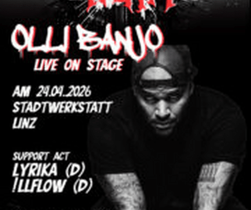 Nach dem erfolgreichen Auftakt 2024 mit keinem Geringeren als Chakuza als Main Act geht die Veranstaltungsreihe HipHop Heat nun in die nächste Runde – und das mit einem absoluten Schwergewicht der deutschen Rap-Szene: Olli Banjo!Hinter HipHop Heat steht Felix Urbina, Gründer von Kallapz Studio, der mit seiner Film- und Musikproduktionsfirma seit Jahren den Linzer Untergrund belebt. Gemeinsam mit dem hauseigenen Produzenten und Rapper Grandmaster Flow verfolgt er eine klare Mission: nationale Hip-Hop-Größen nach Linz zu holen – um die Stadt als aufstrebende HipHop-Hauptstadt sichtbar zu machen und den kulturellen Puls auf ein neues Level zu bringen.2026 bringt HipHop Heat erneut nationale wie lokale Größen zusammen – in einem Abend voller Beats, Bars und Bewegung. Neben Headliner Olli Banjo, einem der prägendsten und innovativsten MCs Deutschlands, stehen !illflow, Lyrika, DJ Dub und die explosive Synergie Dance Crew auf der Bühne.Das Ganze findet in der legendären Stadtwerkstatt Linz statt – dem Hotspot für urbane Kultur und kreative Energie.