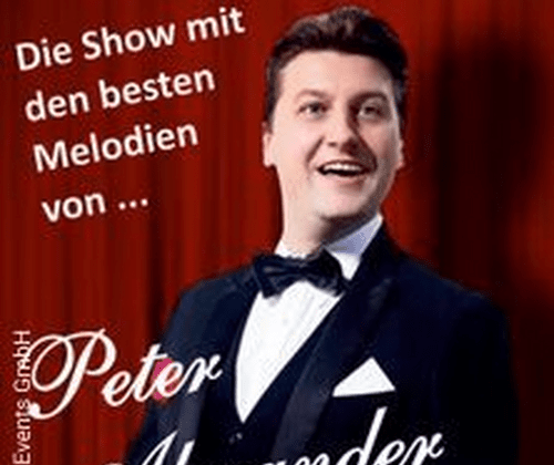 Das Konzert mit den größten Hits von "Peter Alexander" - mit Schauspieler & Sänger Nik Raspotnik als „Peter” und der Dolce Vita Begleitband! "NIK RASPOTNIK begeistert zum Verwechseln ähnlich in dieser Hommage an einen der beliebtesten und erfolgreichsten österreichischen Entertainer das Publikum...! Programmauszug: Das kleine Beisl, Hier ist ein Mensch, Der letzte Walzer, Delilah, Paris ist eine Reise wert, Ich weiss was dir fehlt, Im weissen Rössl, Babysitter Boogie, Ich zähle täglich meine Sorgen