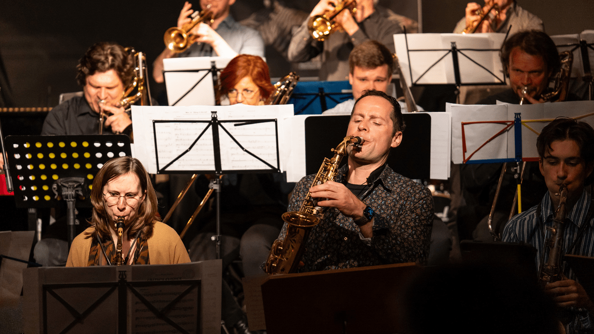 Auf jeden Fall warnen wir schon jetzt die empfindlichen Gäste vor Sitzplatzen in den vorderen Reihen – denn Big Bands erzeugen, wie es der Name erwarten lässt, eine gewaltige Lautstärke, wenn alle Mitwirkenden Fortissimo spielen.