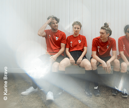 Kapa Tult, bestehend aus Inga (Voc, Git), Robin (Keys), Angi (Drums, Voc) und Neu-Bandmitglied Raphael (Bass), prangern die banalen Missstände unserer Zeit an: Zu viele schlechte Hollywoodfilme, zu wenig Therapieplätze. Außerdem: Keine Lecktücher in Supermärkten, Bootycalls, die sich als Carecalls enttarnen und Freund:innen, die immer busy sind - "weil Alle die Welt oder sich selbst verbessern".