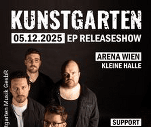 KUNSTGARTEN - deine Lieblingsband aus Wien - lädt ein zur großen Releaseshow ihrer neuen EP Mein viel zu lautes Leben. Sechs Songs, sechs Geschichten, die direkt ins Herz und in die Gehörgänge gehen. Die EP zeigt Kunstgarten so authentisch, laut und explosiv wie nie zuvor.