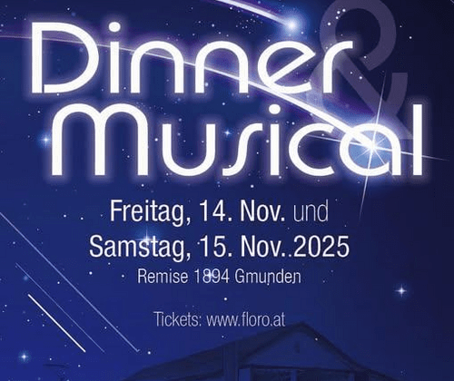 Musical Frühling im HERBST Wir freuen uns sehr, unser Erfolgskonzept von DINNER & MUSICAL im Herbst 2025 erneut präsentieren zu dürfen. Diesmal in Kooperation mit der Stern & Hafferl Verkehrsgesellschaft, mit denen wir bereits im Sommer 2023 mit den “STERNstunden des Musicals” ein wunderbares Open-Air Konzert produzieren durften! Im November verzaubern wir nun mit magischen Highlights aus der Welt des Musicals die Remise 1894 in Gmunden. Das Programm bietet Songs aus “Mary Poppins”, “Die Schöne und das Biest”, “Der König der Löwen”, “The Sound of Music”, “Elisabeth” und natürlich auch einige Hits der Produktionen des Musical Frühlings in Gmunden. Es erwartet Sie eine Combo des Musical Frühling Orchesters unter der Leitung von Tomáš Küfhaber, sowie erstklassige SolistInnen der Musical-Szene.