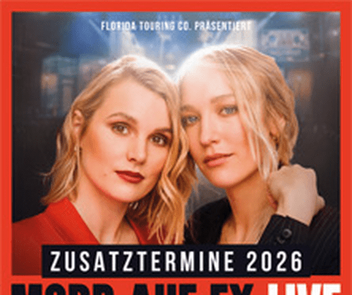 Nach dem erfolgreichen Tourauftakt im Frühjahr 2025, mit mehr als 60.000 verkauften Tickets, begibt sich MORD AUF EX - einer der erfolgreichsten deutschen True-Crime-Podcasts - nun noch einmal auf die Live-Bühne: im Januar 2026 nehmen die Podcasterinnen Linn Schütze und Leonie Bartsch ihr Publikum bei acht weiteren Auftritten mit in die Rekonstruktion eines wahren Kriminalfalls. Darunter auch ein Termin in der Salzburgarena in Österreich.
