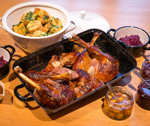 Verarbeitet werden ausschließlich BIO-Weidegänse von der Familie Krainer aus Riegersburg – regional, nachhaltig und mit höchstem Qualitätsanspruch. Ob klassisch gebraten, fein gewürzt oder kreativ interpretiert: Das Gansl zeigt sich hier von seiner besten Seite. Begleitet von saisonalen Beilagen wird jeder Bissen zum kulinarischen Erlebnis. Tipp für Genießer zu Hause: Das sanft gegarte BIO-Weidegansl gibt es auch zum Mitnehmen – einfach vorbestellen, Wunschtermin vereinbaren und gemütlich daheim genießen. Auch der hausgemachte Gansl-Leberaufstrich im Glas (143 ml) ist eine echte Delikatesse für zu Hause oder als Geschenk.