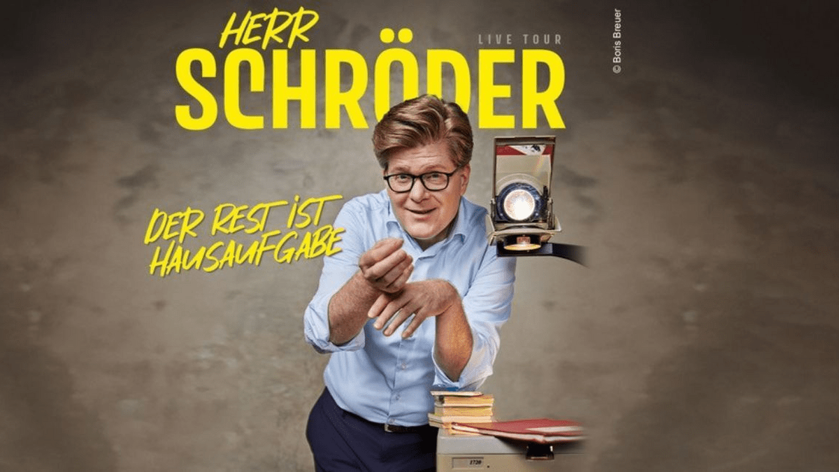 Herr Schröder ist wieder da! Endlich ist der staatlich geprüfte Deutschlehrer mit seinem neuen Solo „Der Rest ist Hausaufgabe“ wieder auf Tour. In STADT läutet die Schulglocke dann am TAG, DATUM, in HALLE.