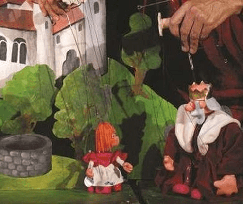 Gespielt wird in einem großen alten Schrankkoffer, aus dem sich das Schloss der Prinzessin entfaltet, begleitet von Live-Musik vom Hofmusikanten.