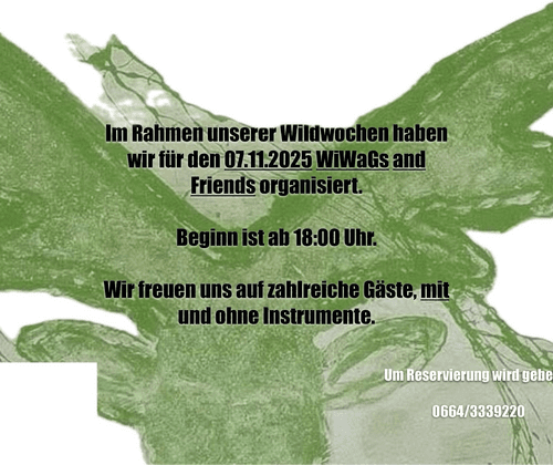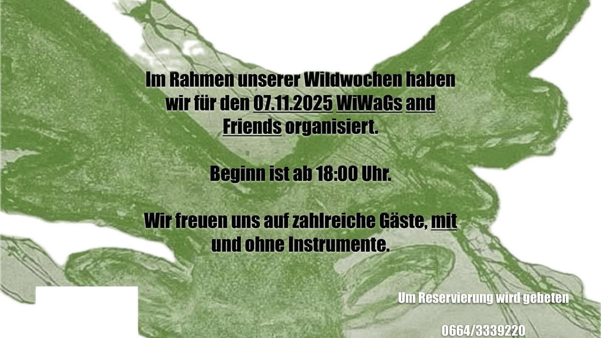 Am 07. November 2025 ab 18:00 Uhr lädt das Restaurant Kohlhof im Rahmen seiner Wildwochen zur musikalischen Begleitung ein: Die Gruppe „WiWaGs and Friends“ spielt live und sorgt für beste Stimmung.