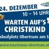Eislaufplatz in Obertrum am See– Warten auf’s Christkind Am 24. Dezember von 10:00 bis 14:00 Uhr wird der Eislaufplatz in Obertrum am See zur perfekten Adresse, um die Wartezeit auf das Christkind zu verkürzen. Ob mit Familie, Freund:innen oder einfach für eine kleine Auszeit – beim Eislaufen kommt garantiert festliche Stimmung auf. Begleitet von Weihnachtsmusik und einer gemütlichen Atmosphäre lässt sich die Zeit bis zur Bescherung spielerisch vertreiben. Ein stimmungsvoller Start in den Heiligen Abend – für Groß und Klein!