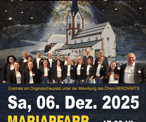 Das Stille Nacht Ensemble unter Mitwirkung des Chors HERZWÄRTS umrahmt von einer beeindruckenden Lichtinszenierung erzählt die Geschichte und Entstehung des "Stille Nacht, Heilige Nacht!" Liedes, zu dem Joseph Mohr 1816 in Mariapfarr den Liedtext verfasste.Nachdem Franz Xaver Gruber eine berührende Melodie zu dem Text von Joseph Mohr geschrieben hatte, wurde das Lied bei der Christmette 1818 in der Nicolaikirche in Oberndorf uraufgeführt.Nach und nach verbreitete sich das Lied wie ein Flächenbrand über alle Kontinente. Mit der Übersetzung in 300 Sprachen und Dialekte wurde es zum berühmtesten Weihnachtslied, das jährlich von über 2 Milliarden Menschen gesungen wird.Text: Hans Müller / Musik: Georg StampferEintritt: € 25,00Kartenvorverkauf in den Tourismus Infostellen Mariapfarr, Tamsweg, Mauterndorf und St. Michael sowie an der Abendkasse
