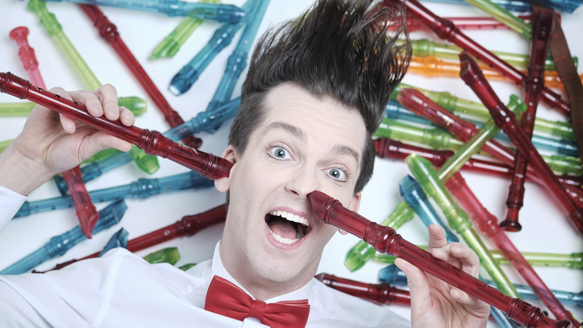 Kann eine Flöte die Welt retten? Gabor Vosteen versucht es! Mit zahlreichen Plastikflöten, einer rockigen E-Flöte, der einzigen Leopardenbassflöte der Welt und frechen Flötenideen verbindet »The Fluteman« Poesie und Comedy zu einem verrückten, kongenialen Konzert für Jung und Alt.