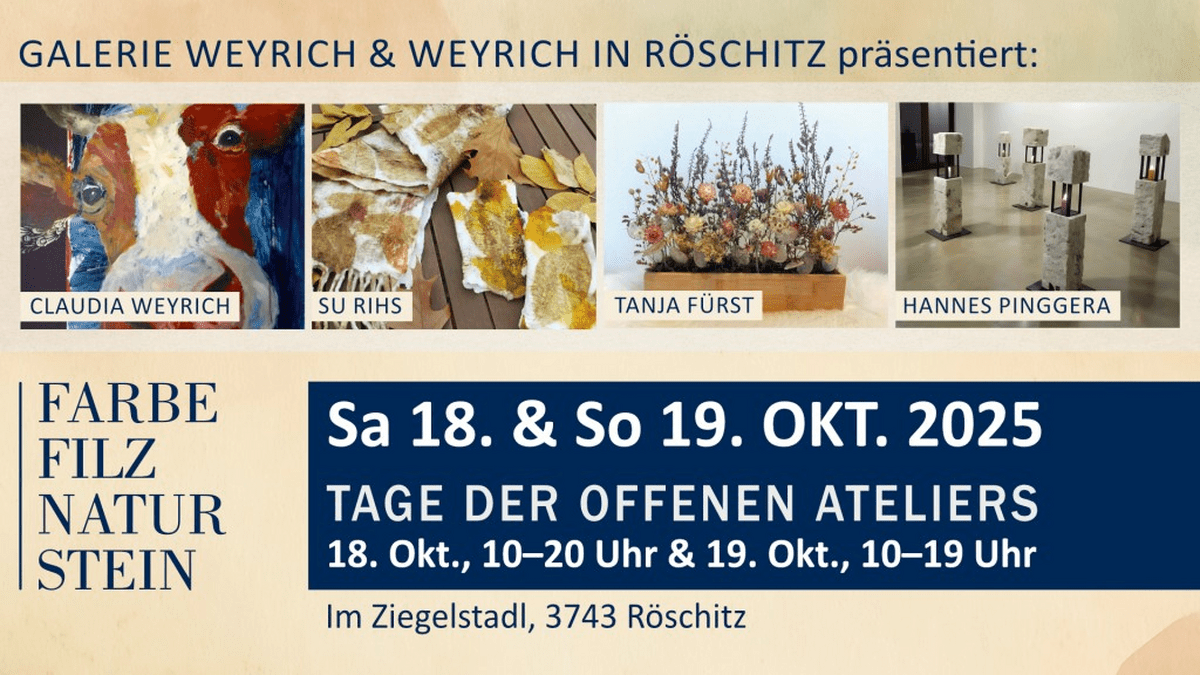 Wir öffnen die Türen eines liebevoll umgestalteten Weinkellers zu den Tagen der offenen Ateliers. Ein Ort, an dem Kunst, Natur und Seele miteinander verschmelzen. Vier Künstler:innen, vier Handschriften verbunden durch Hingabe, Handwerk und schöpferische Kraft.