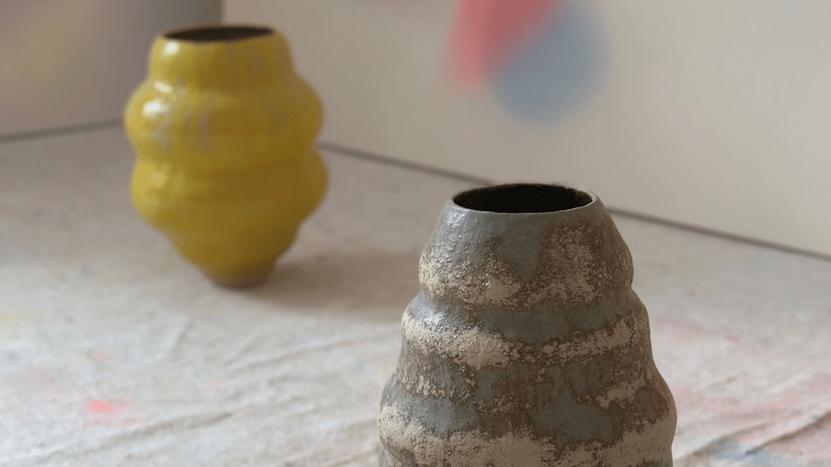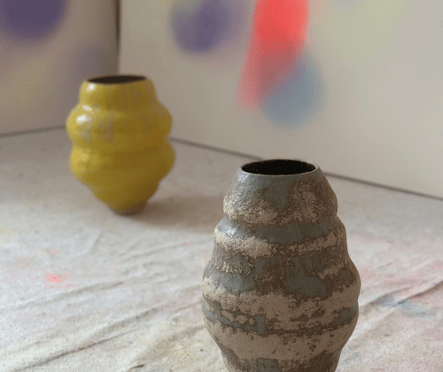 Malerei aus der Werkserie der „Arising Colors“ und keramische Gefäßobjekte