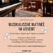 An den 4 Adventsonntagen findet jeweils um 10:30 Uhr eine Musikalische Matinée in der Lehárvilla statt. Begrenzte Teilnehmerzahl von 15 Personen Termine: 30.11.25, 7.12.25, 14.12.25, 21.12.25 An den beiden Flügeln in der Lehárvilla spielt Ralph Petruschka. Anmeldung unter: leharvilla@stadtmuseum.at