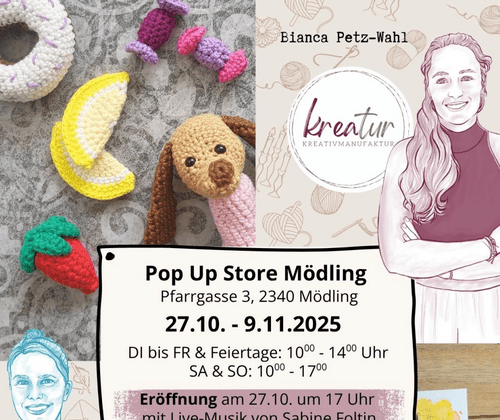 Interessierte können von 27.10. bis 9.11. Dienstag bis Freitag sowie am Feiertag von 10 bis 14 Uhr, Samstag und Sonntag 10 bis 17 Uhr im Mödlinger Pop Up Store vorbeischauen.