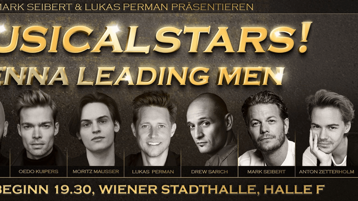 Acht der bekanntesten Musicalstars Wiens freuen sich auf einen einmaligen Konzertabend mit ihrem Wiener Publikum : Am 8. Februar 2026 um 19.30 Uhr bringt „Musicalstars – Vienna Leading Men“ die Wiener Stadthalle F zum Klingen.