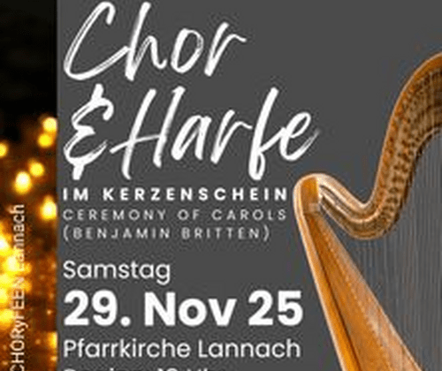 Einen ganz besonderen Abend in der Pfarrkirche Lannach für Liebhaber außergewöhnlicher Chormusik gestaltet der Frauenchor "CHORyFEEN Lannach" unter der Leitung von Heide-Marie Reif gemeinsam mit Marlene Trauner, Konzertharfe. Ceremony of Carols von Benjamin Britten