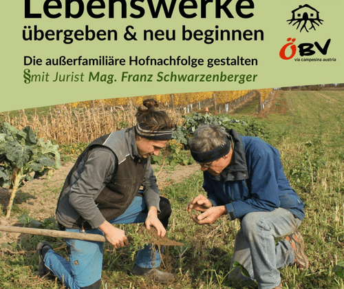Eine Hofnachfolge in der Familie ist nicht immer möglich – viele Menschen, von weichenden Erbinnen bis zu Quereinsteigerinnen mit Erfahrung, möchten jedoch einen Betrieb weiterführen. Die Plattform www.perspektive-landwirtschaft.at unterstützt bei der außerfamiliären Hofnachfolge und stellt am Infoabend ihre Angebote sowie zentrale rechtliche und zwischenmenschliche Aspekte vor. Das Lebenswerk außerfamiliär zu übergeben bietet Chancen für die Übergebenden sowie Hofsuchenden.